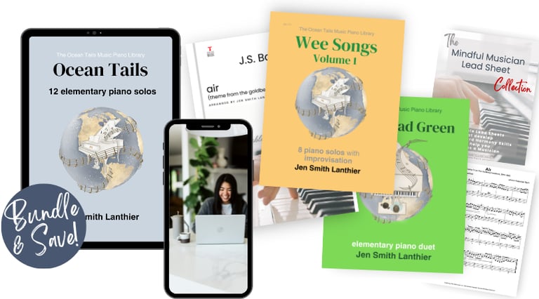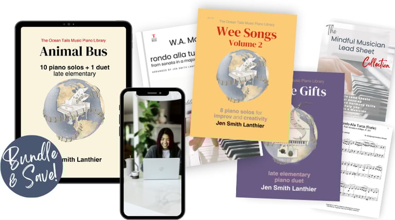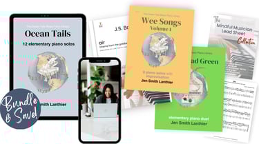 My piano bundles are designed for players who want a variety of piano music and resources to help them build real piano skills — without the challenge or overwhelm of trying to piece everything together on their own.