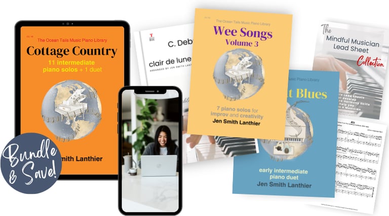 My piano bundles are designed for players who want a variety of piano music and resources to help them build real piano skills — without the challenge or overwhelm of trying to piece everything together on their own.